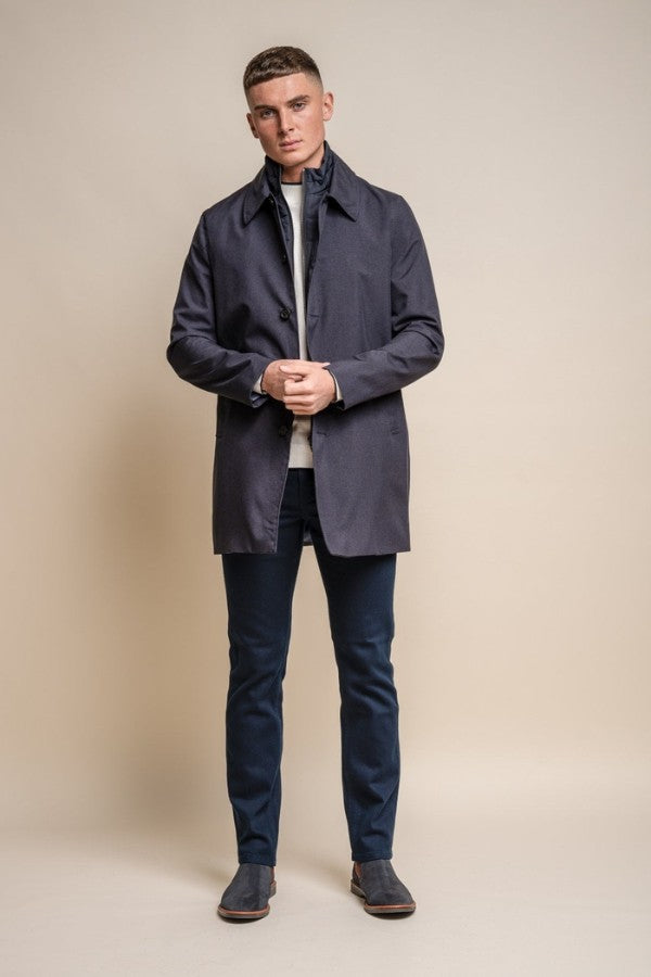 The Brando Mac Coat offers a classic, timeless design. Its clean lines and tailored fit make it a versatile addition to any wardrobe. Perfect for formal or casual occasions, it provides both style and comfort. Features a removable quilted chest insert. Ideal for cooler weather, this coat is an essential layering piece. 100% poly